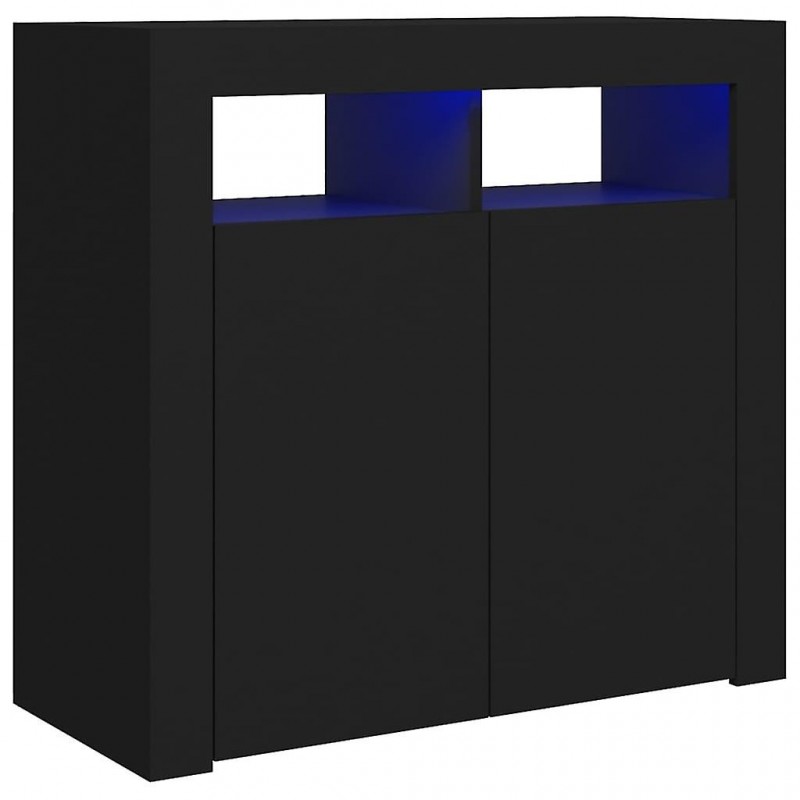 Acest bufet cu iluminare LED este practic și ideal pentru casa ta. Construcția sa robustă îl face extrem de durabil. De asemenea, oferă spațiu amplu de depozitare pentru cărți, dispozitive multimedia și alte obiecte. Blatul robust este ideal pentru expunerea obiectelor decorative, a ramelor foto sau a plantelor în ghiveci. Acest bufet dispune de iluminare LED RGB cu diverse meniuri pentru schimbări și ajustări automate ale culorilor. Iluminarea LED evidențiază aspectul modern și contribuie la o senzație contemporană. Notă: Produsul este echipat cu un port USB, dar nu vine cu o sursă de alimentare USB certificată de 5V.