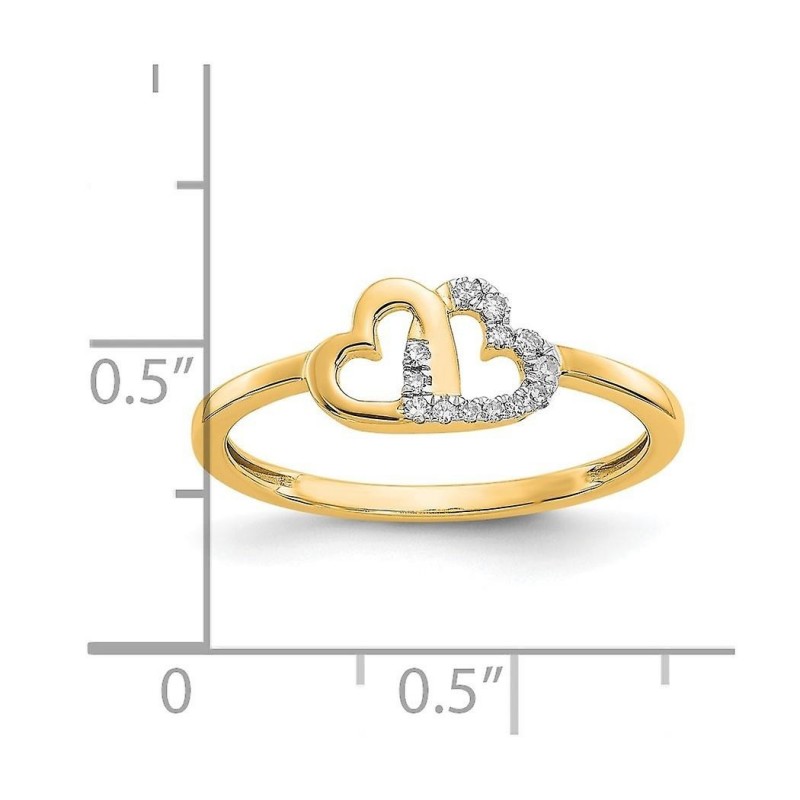 Inel din aur de 10k cu diamant dublu în formă de inimă, cu diametrul de 2 mm, mărimea 7.00, cadoul p