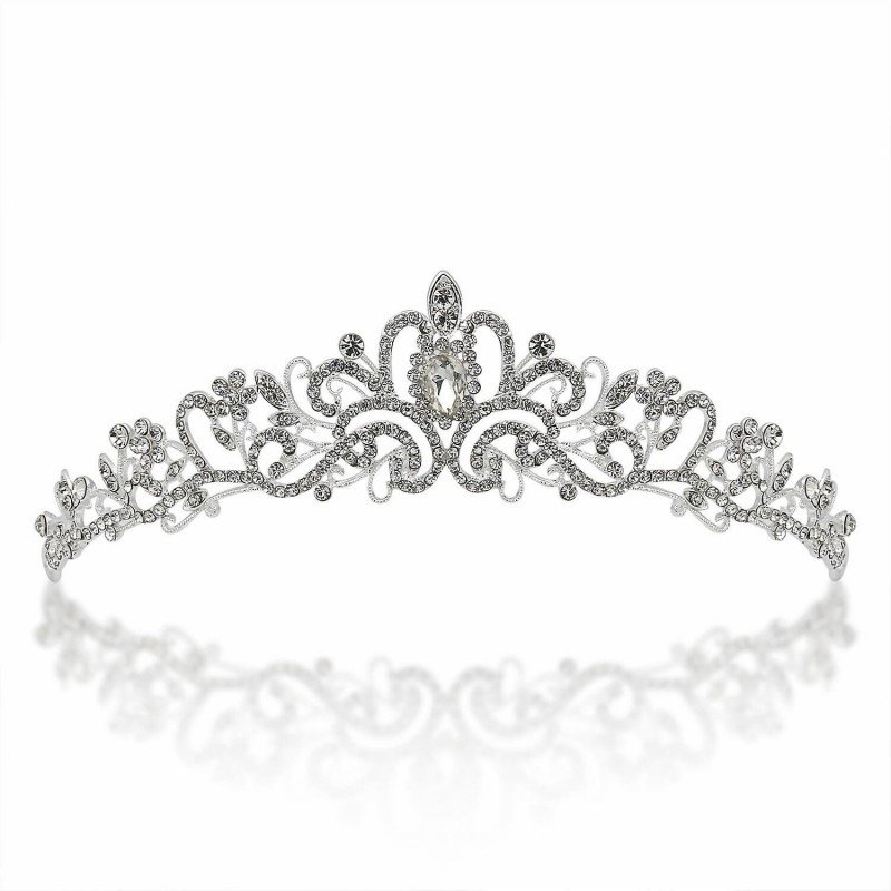 Tiară de nuntă, argintie, metal cu cristale, 16 x 22 x 4,5 cm