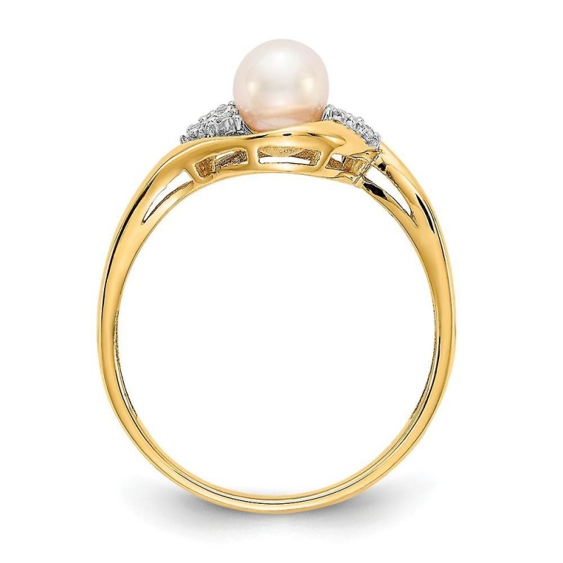 Inel cu perle de cultură de apă dulce și diamant, aur galben de 14k - Greutate diamant 0,02 ct și greutate piatră prețioasă 1,13 ct în aur galben de 14k - Cutie de bijuterii gata de cadou - Mărime 7.00 - Grosime: Sub 2 mm - Lățime bandă: 2 mm - Lungime vârf bandă: 6 mm - Lățime vârf bandă: 10 mm - Lățime vârf bandă: 10 mm - Lungime vârf bandă: 6 mm - Caracteristică: Solidă - ::: ::: [Îngrijire și manipulare: Diamant] - Curățați cu apă caldă cu săpun și o perie sau o lavetă moale. ::: ::: [Metode posibile de îmbunătățire: Perle de cultură] - De obicei, decolorate și lustruite pentru o culoare și o formă uniforme. Pot fi vopsite sau iradiate pentru a produce culori diferite. ::: [Îngrijire și manipulare: Perle de cultură] - Nu utilizați aparate de curățare cu ultrasunete sau aburitoare. Evitați contactul cu cosmetice, fixativ de păr, parfumuri și substanțe chimice de uz casnic. Ștergeți cu o lavetă moale. :::