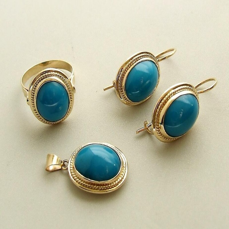 Inel, cercei și pandantiv din aur cu mărgele turcești.