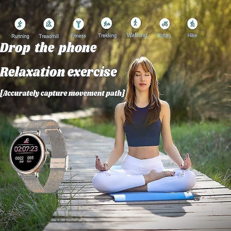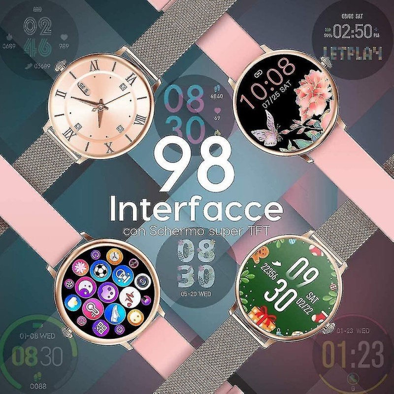 Ceas inteligent cu ecran tactil complet impermeabil Aspectul elegant al acestui ceas inteligent cu ecran tactil complet este cel mai bun cadou pentru femei. Acesta măsoară ritmul cardiac, tensiunea arterială, monitorizarea somnului, ciclul fiziologic feminin, pedometrul, kilometrajul exercițiilor fizice, consumul de calorii, înregistrarea distanței, memento-urile sedentare și multe moduri sportive etc. Este rezistent la apă, transpirație și ploaie pentru viața de zi cu zi. 8 moduri sport și rezistență la apă IP67 Urmăriți activitățile pe tot parcursul zilei, inclusiv pașii, distanța și caloriile arse. 8 moduri sport vă monitorizează datele de mișcare pentru a vă personaliza antrenamentul. Puteți alerga, merge cu bicicleta, juca fotbal etc. Vă puteți monitoriza mișcările în piscină și îl puteți folosi sub un duș rece. Notificări și mesaje text Primiți apeluri, SMS-uri, mesaje SNS, Facebook, WhatsApp, Twitter, Instagram etc. Când primiți o notificare, ceasul va vibra pentru a vă reaminti. Pur și simplu conectați brățara la telefon prin intermediul aplicației și setați-o în aplicație. Nu veți pierde niciun apel sau mesaj. Monitor de ritm cardiac și monitor de somn: Cu senzori optici inteligenți încorporați, tracker-ul de activitate vă monitorizează ritmul cardiac în timp real și îl detectează automat. În plus, monitorizează eficient calitatea somnului și oferă o analiză cuprinzătoare pentru a vă ajuta să adoptați un stil de viață sănătos. Compatibilitate și alte caracteristici: Acest ceas este compatibil cu smartphone-urile care rulează iOS 9.0 / Android 4.4 sau o versiune ulterioară și Bluetooth 4.0 sau o versiune ulterioară. Acest ceas dispune, de asemenea, de alarmă, cronometru, control de la distanță al camerei, prognoză meteo și reglare a luminozității. (Nu este compatibil cu iPad)